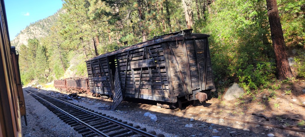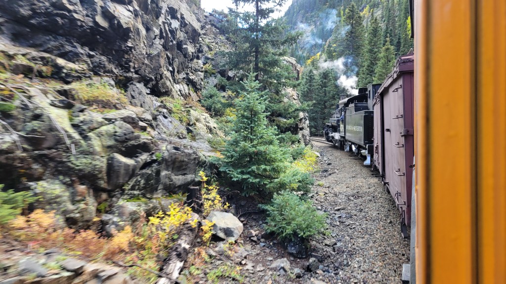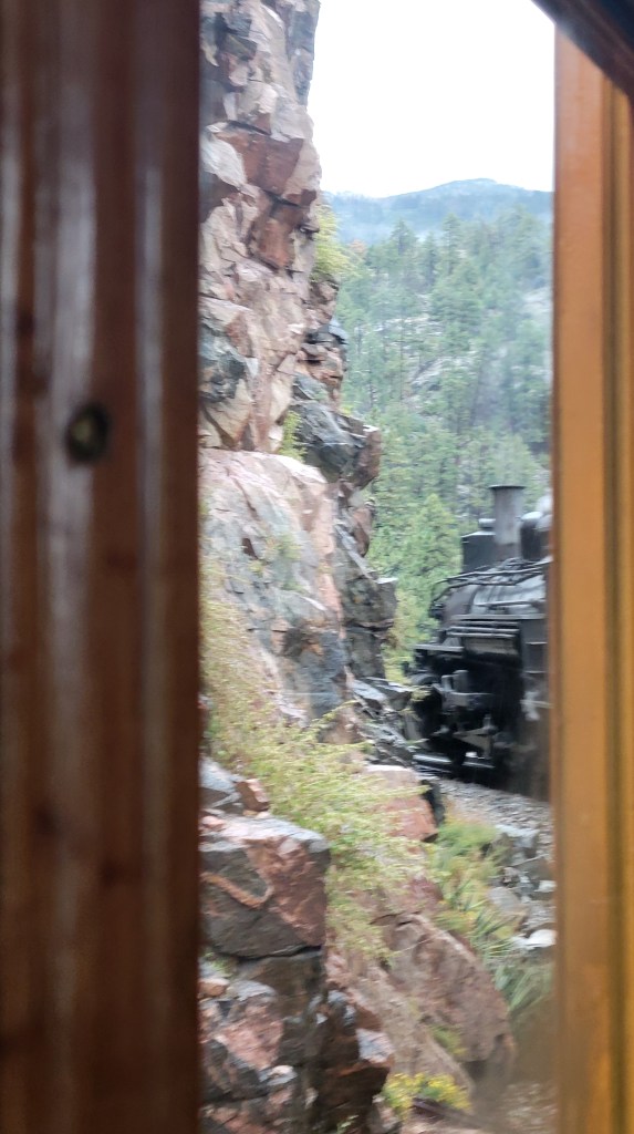 You can choose to ride the train one way or round-trip. We chose the round-trip tickets. I recommend buying tickets to sit inside because the train goes rain or shine and the day we went there were some big thunderstorms. You can still get up and walk to the outdoor cars. My husband spent half the ride back in one of the open air cars. I sat in my seat, opened my window, and took a ton of photos and videos. If you do what I did, be safe. There are some VERY close rocks, etc. and you could seriously injure yourself or even die, if you aren’t paying attention and you stick your head out the window.